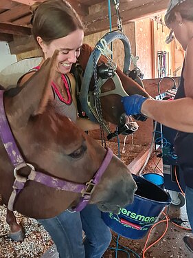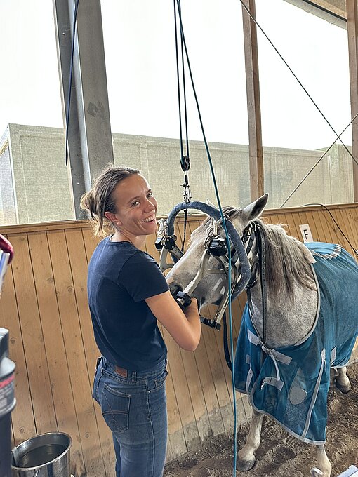 Pia Engelhart ist die gute Seele der Praxis. Als gelernte TFA betreut sie kompetent Patienten und deren Besitzer. Egal ob es darum geht am Telefon immer freundlich zu beraten oder Pferd und Mensch zu beruhigen, Pia ist souverän dabei. Nicht zuletzt ist sie meine Stütze in der täglichen Praxis und im Büro.